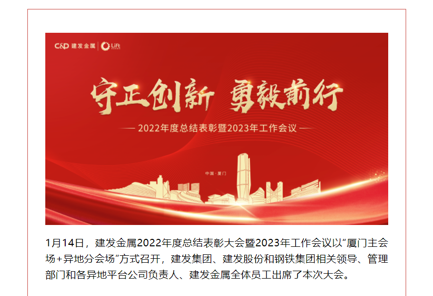 守正創(chuàng )新 勇毅前行 | 建發(fā)金屬召開(kāi)2022年度總結表彰大會(huì )暨2023年工作會(huì )議